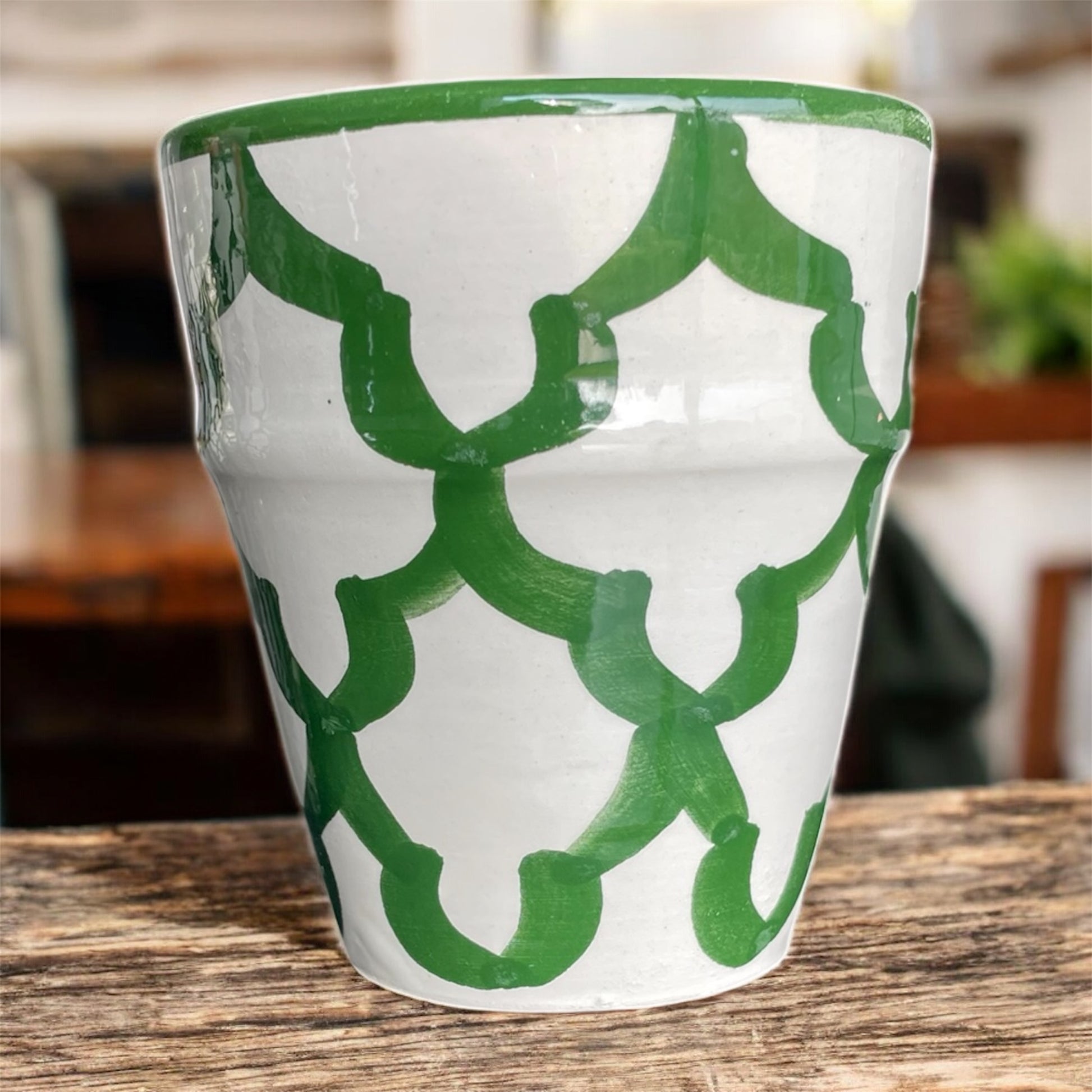 Handgemaakte Marokkaanse Mok - Keramiek - Groen motief - 1 st